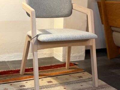 樹種はウォールナット。張地はお客様のご注文時は未だ少しあったのですが、先々月あたりに生地残量がなくなりそのまま廃盤になってしまいましたがCランクの青色生地です。(art10000-1)