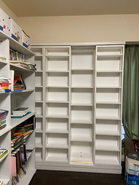 このクレームがおきないように改良したのが現在のオーダースライド書棚です。