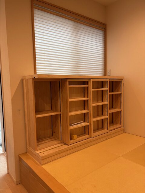 リビングにある1段上がった和室の窓下に納品しました。