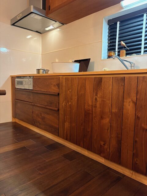 お店で使用している無垢材のキッチンはkitokiプロジェクトの時に九州の丸庄さんが製作されたもので、現在はぬけられkitokidでもキッチンは無く・・・・