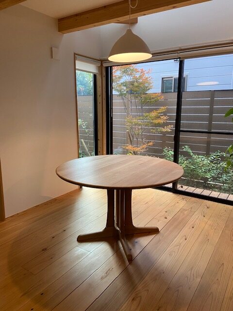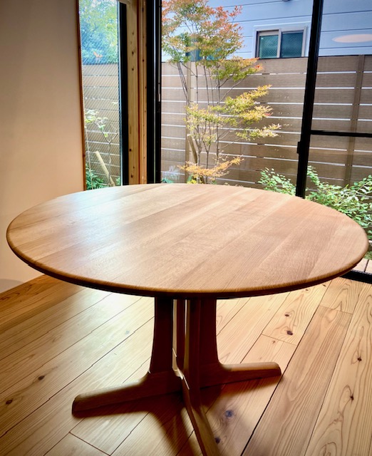 木馬舎のオーク材 シズクル丸テーブルを展示しました。