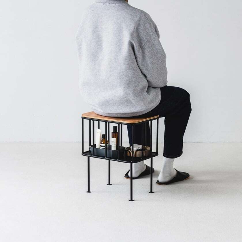 ドレッサーの前で椅子として使用して、その下に化粧瓶???などを収納可能です。
