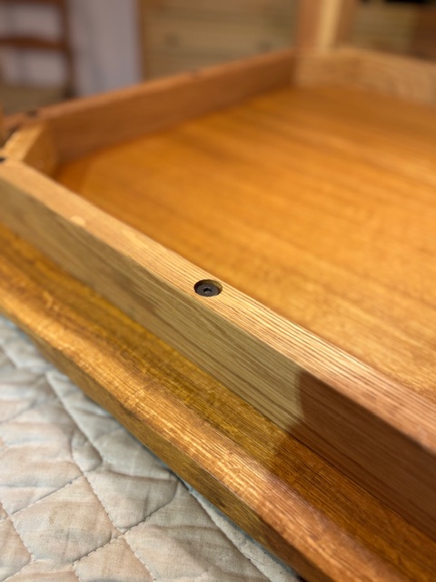 昨日は展示現品の楢の一枚板が売れましたので、足と天板がしっかりジョイントできるように、天板の裏にボルトが止まるメス?(オニメ)をいれる作業とメンテナンスをしました。