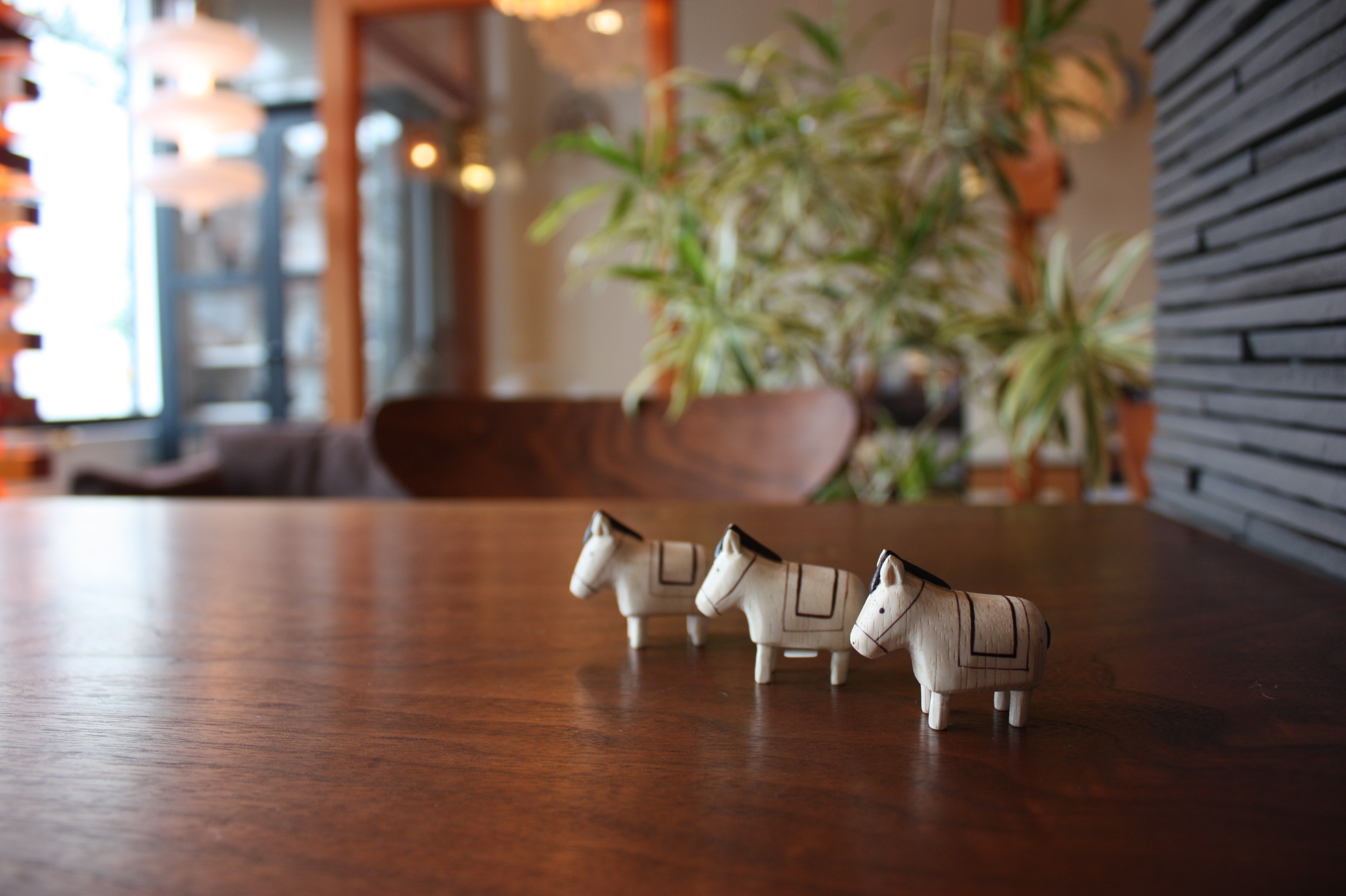ウォールナットのオリジナルテーブルの上。ぼやけて見えるのはナガノインテリアの椅子かな。