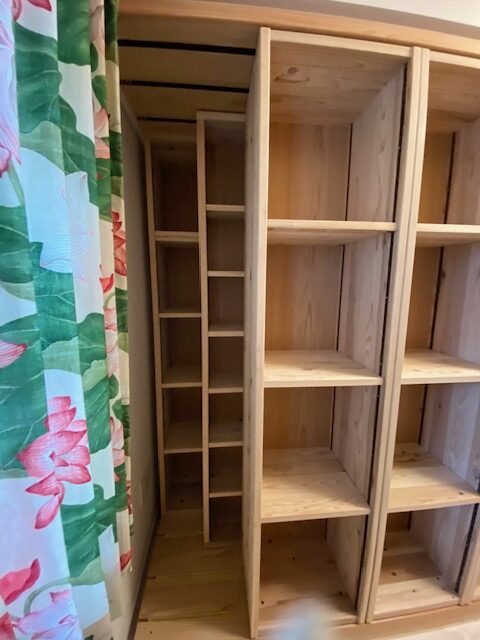 スライド書棚は普通。後ろの固定BOXが5個あれば前は4つその前は4つなんですが、本の取り出しやすさや予算面からBOXを減らすことがあります。