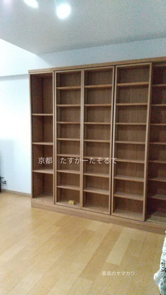 大阪府高槻市へブラックチェリー突板のオリジナルスライド書棚を納品しました