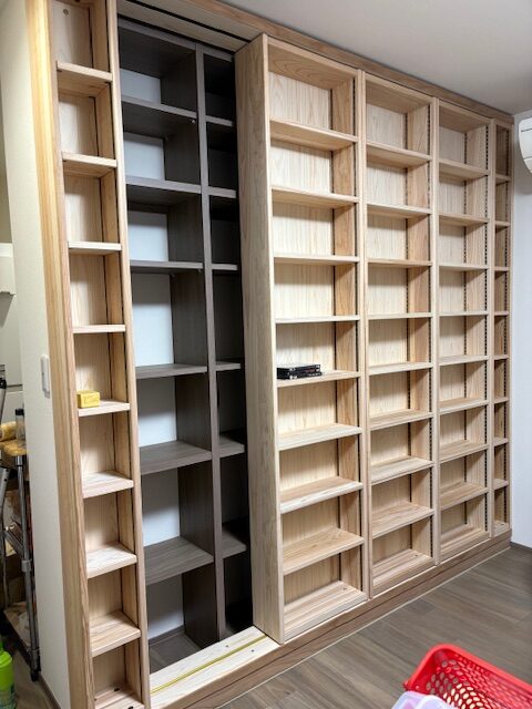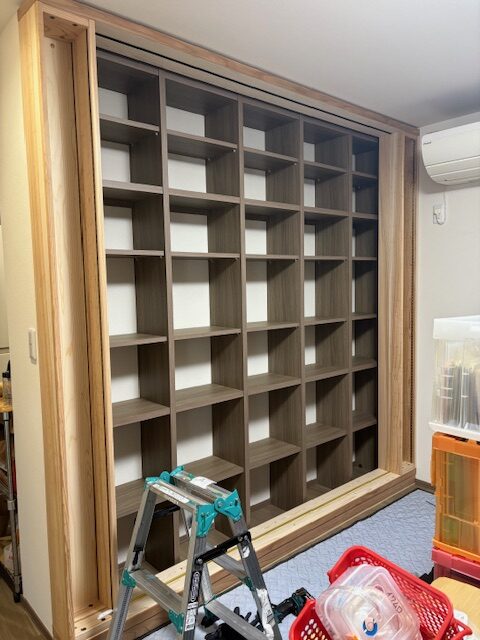 既存の本棚の前にスライドするだけの本棚を設置しました。