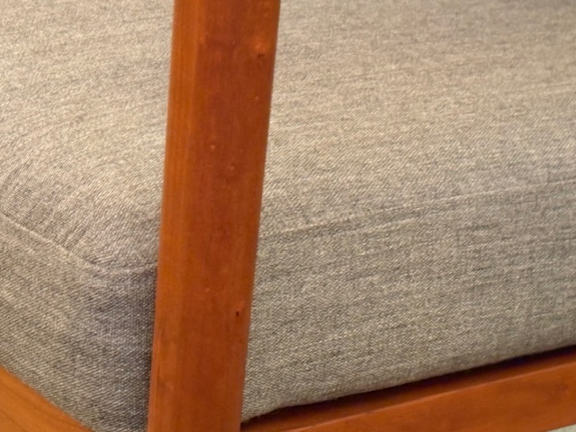 背は縦格子で、他の一人掛けよりも座面の高さが低く、座は後ろに傾斜がなくフラットで幅は広く、